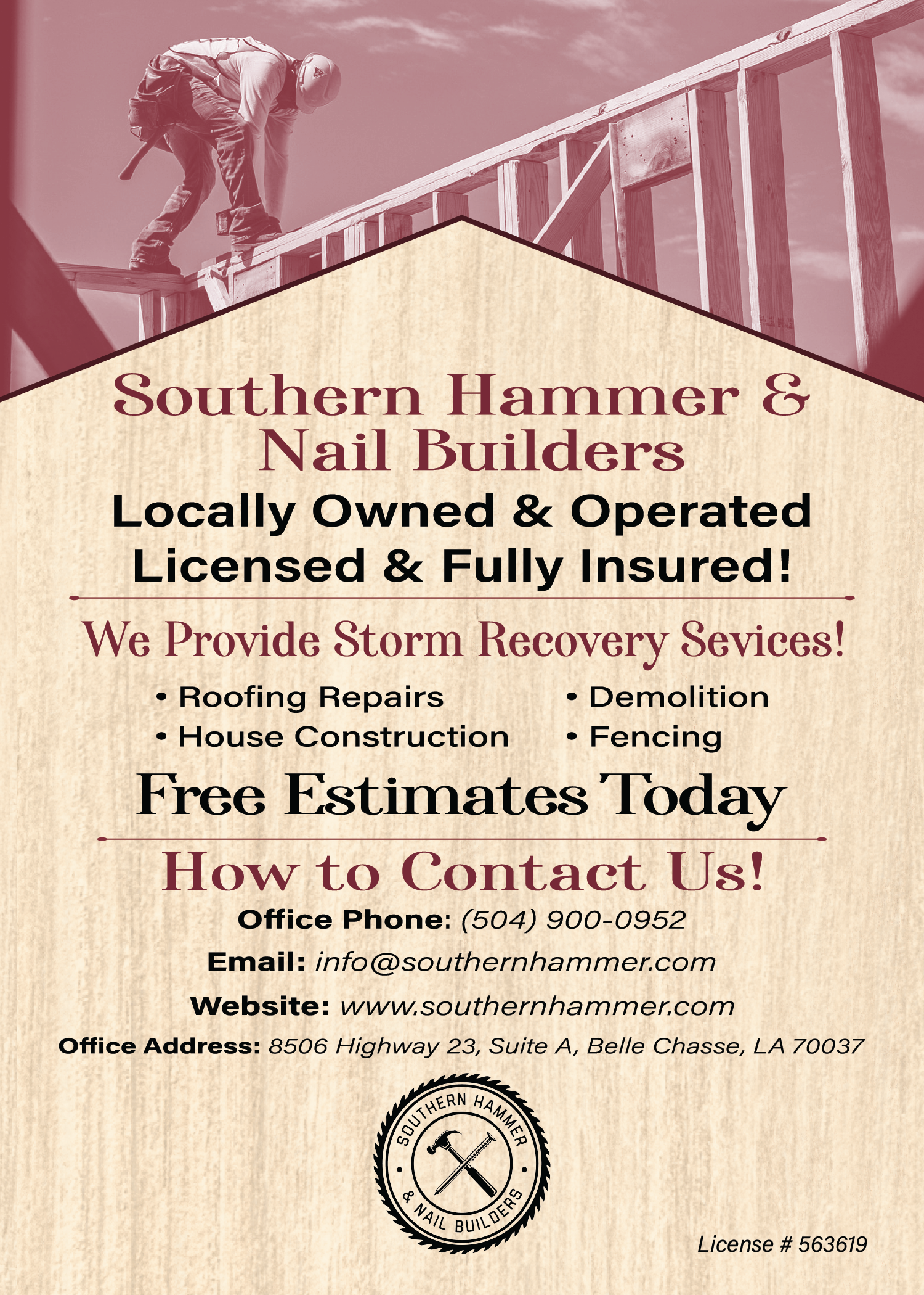 The imapct of hurricane isaac left a mark on New Orleans that the city was all too aware of. Even though it was not as devastating as previous natural disasters the city had faced in the past, many people were left without a home or needing repairs from an affordable local company that they could trust. That is where Southern Hammer & Nail stepped in, and the designs needed to give off a sense of trust using the vast information needed to keep locals informed about what the right steps they should be taking.